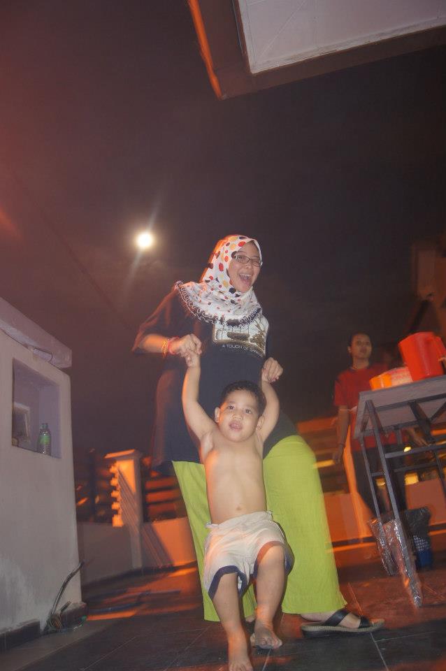 Giliran Ummi pulak pujuk, gosok-gosok perut skit, akhirmya dia turunkan kaki dia tu. Tapi tangan still kat muka.